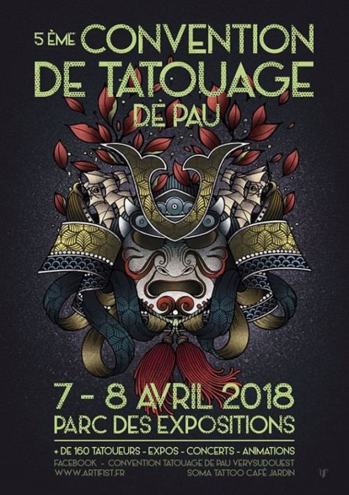 Je serai présent à la 5ème édition de la Convention de tatouage de Pau, Samedi 7 et Dimanche 8 avril 2018, au Parc Des Expositions de Pau, 7 Boulevard Champetier de Ribes, 64000 Pau.