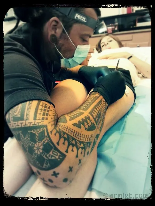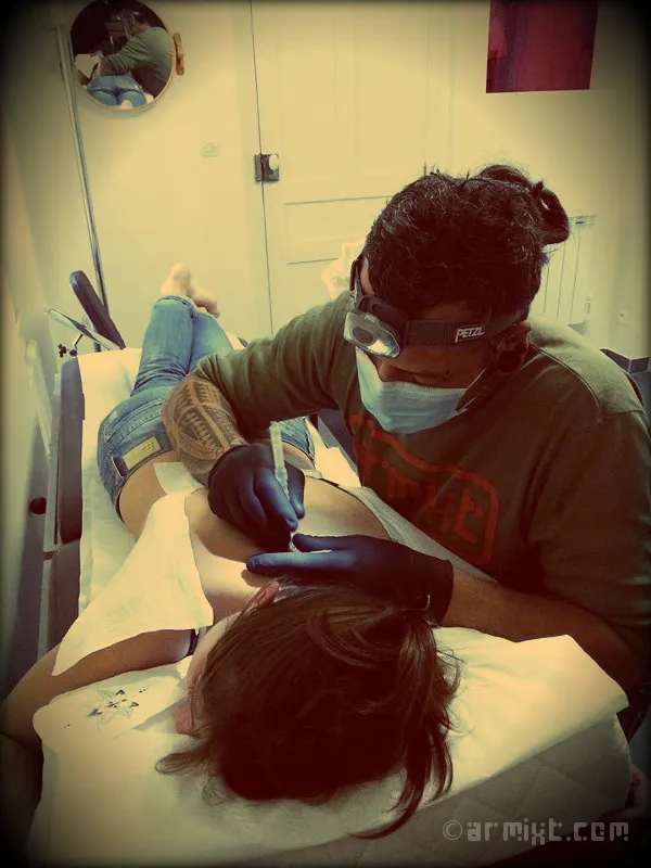 Sur le site tattoodo.com vous y trouverez un très bel article (en anglais) sur les origines et le déroulement d'un tatouage fait au point par point. De plus, une photographie d'un de mes outils y figure pour illustrer l'outil utilisé dans cette technique de tatouage.