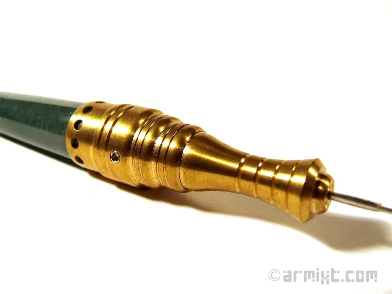 Utilisation : Aiguille à tatouer standard de machine à tatouer. Vous devrez couper votre aiguille à tatouer pour pouvoir l'insérer dans l'outil. Serrage à vis sans tête en inox (clé allen fournie)