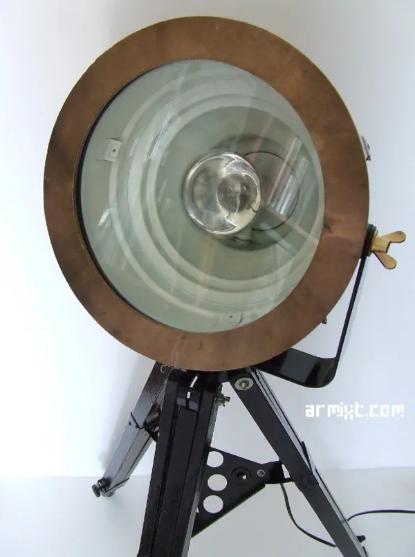- Réflecteur : Une ancienne lampe de fontaine en cuivre.