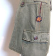 Jupe en coton kaki, matière récupérée sur une chemise épaisse militaire.