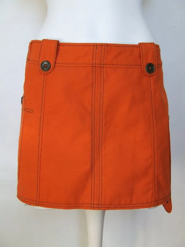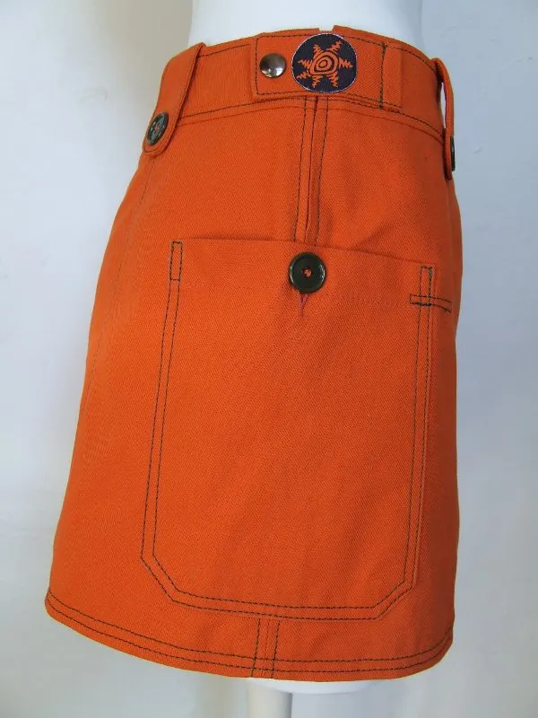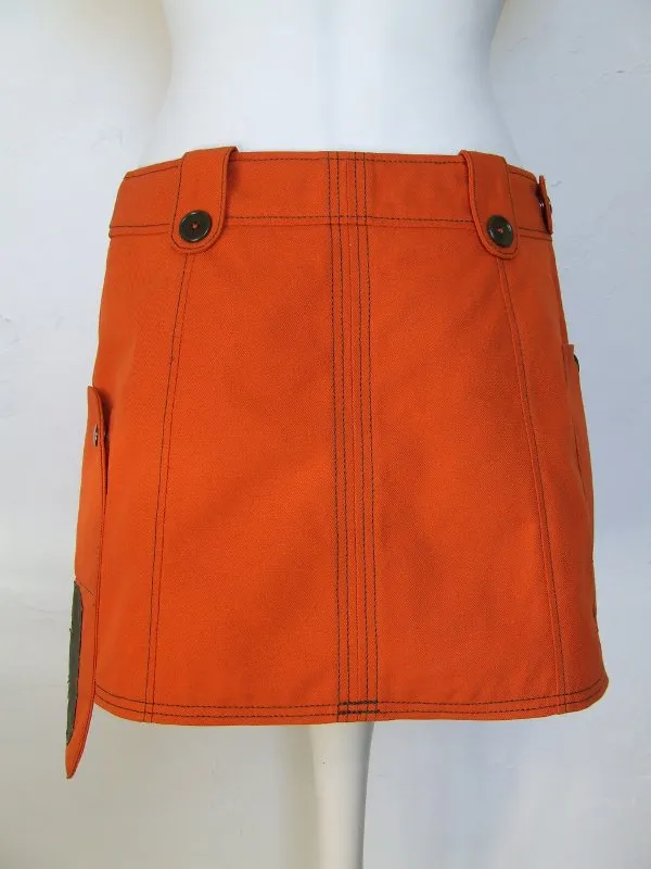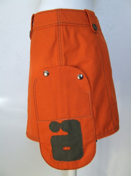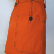 Jupe orange, matière récupérée sur un pantalon de travail.