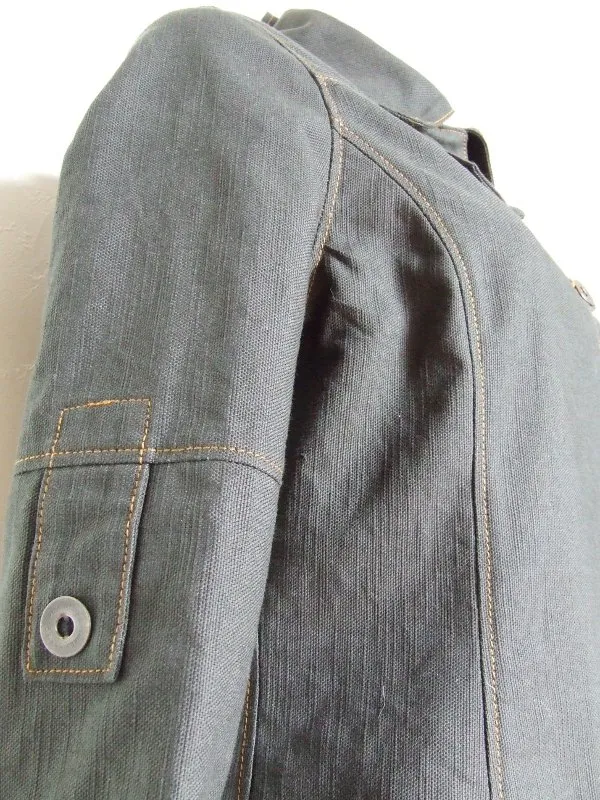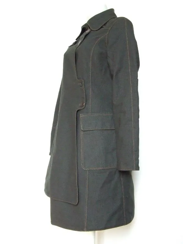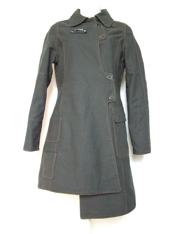 Manteau de coupe asymétrique et ajusté à la taille. Toile épaisse kaki-foncé et surpiqûres orange. Entièrement doublé Fermeture boutonnée 3 poches t. 42 (EPUISE) Disponibilité vendu Publié dans Mode Voir plus de Femme Coton Manteau Ajouter un commentaire