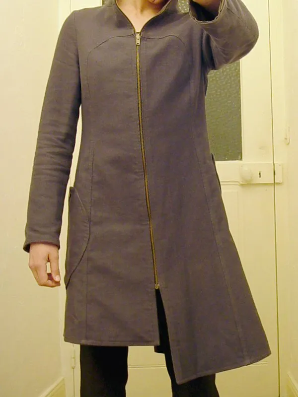 Une coupe cintrée, un col Mao et une fermeture zippée.