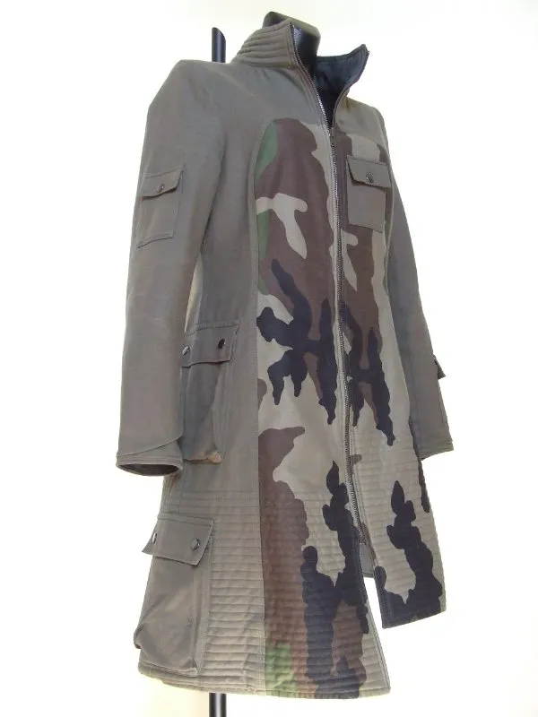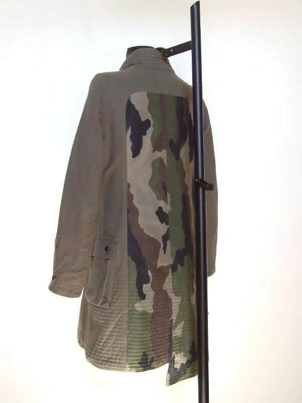 - Le côté kaki&camouflage offre un style plus urbain à ce manteau avec plusieurs poches rectangulaires de différentes tailles.