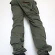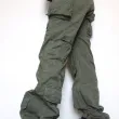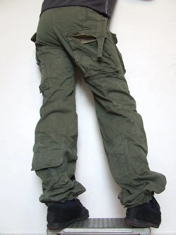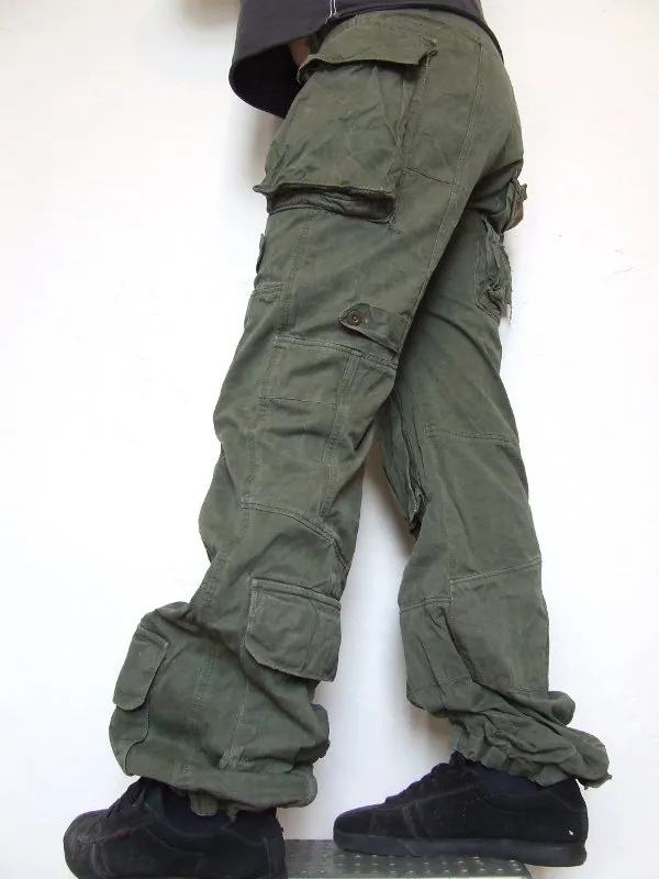 Jeans kaki, matière récupérée sur des treillis et vestes de l'armée qui en fait une véritable pièce unique.