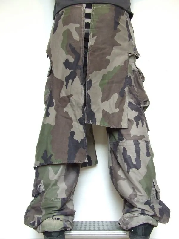 Pantalon-jupe en tissu camouflage.