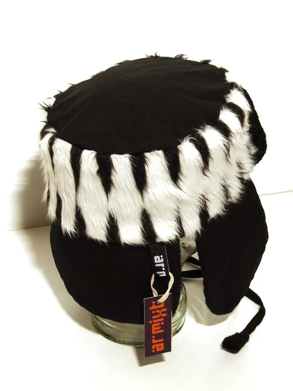 Chapka noire et fausse fourrure zébrée, intérieur moumoute rase noire... très originale. 45€ (EPUISE) Disponibilité vendu Publié dans Mode Voir plus de Accessoires Coton Synthétique Chapka Ajouter un commentaire