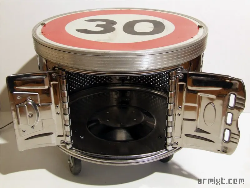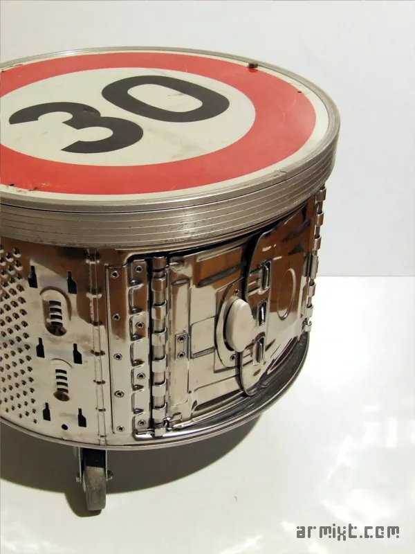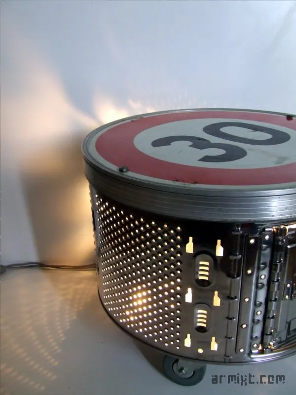 - Un tambour de lave-linge revisité en table-basse.