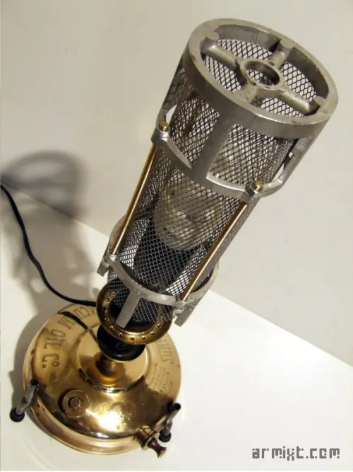 - Socle : vieux chauffe-plat à pétrole