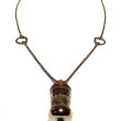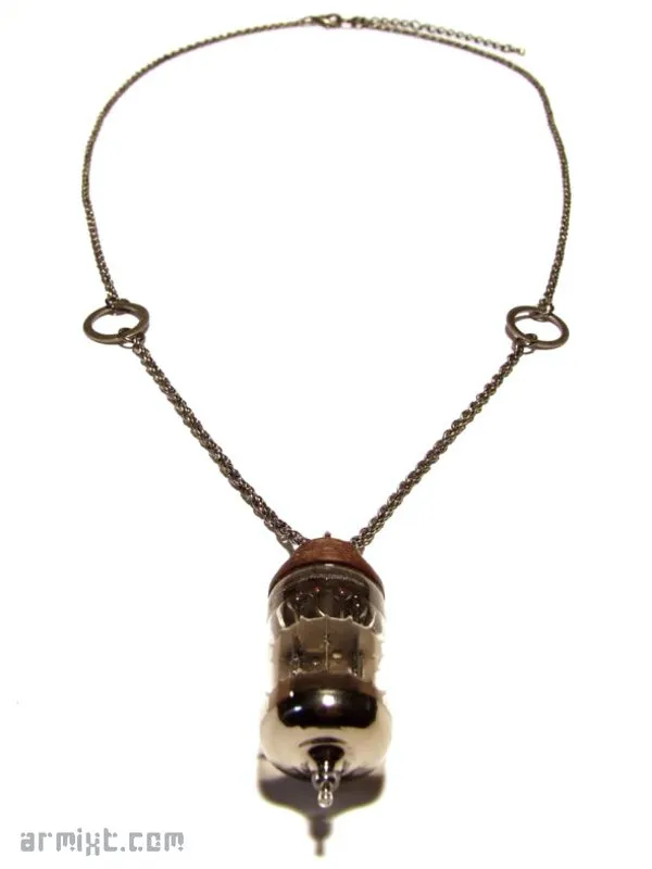 Collier Steampunk avec son pendentif en verre incrusté, monté sur du bois (Bloodwood) tourné à la main, finition à la cire d'abeille, chainette, fermoir.