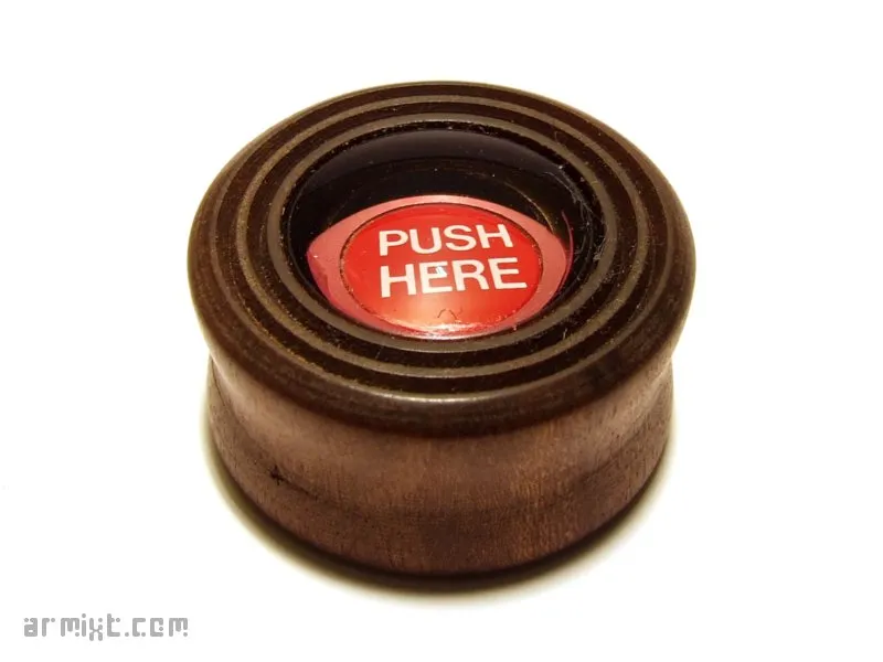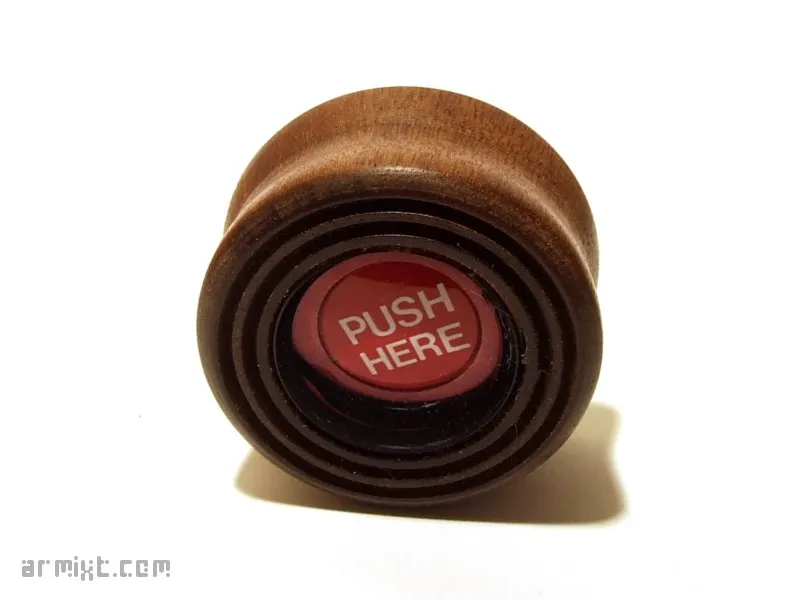- Design : cible et logo "push here" incrusté sous lentille en verre