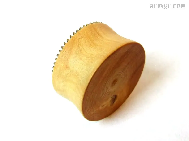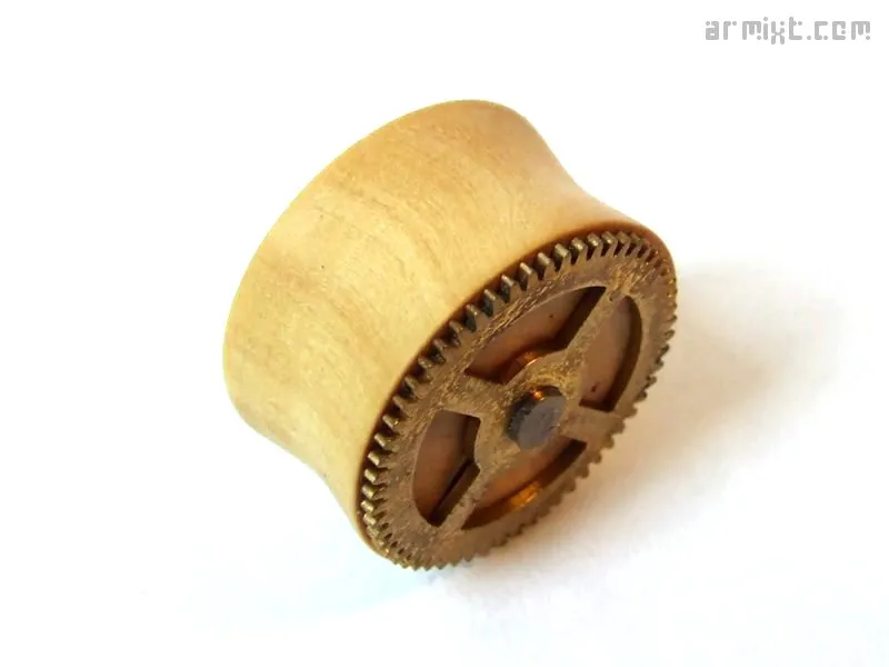 Plug Steampunk tourné à la main, finition à la cire d'abeille Bois : Buis (1940) Design : Engrenage laiton Epaisseur : 11.5 mm Diamètre : 21 mm 20€ Disponibilité en stock Publié dans Piercing Voir plus de Plug Bijoux Steampunk 21mm Bois Métal Ajouter un commentaire