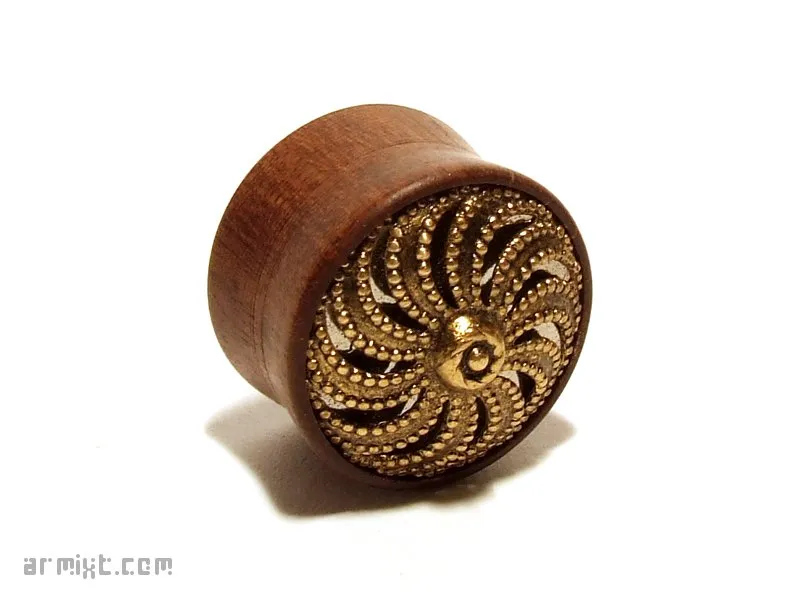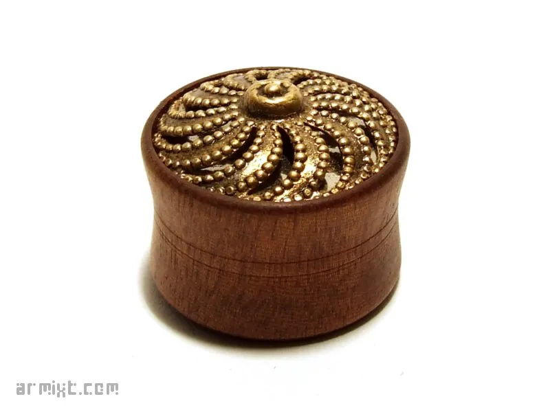 Plug Steampunk tourné à la main, finition à la cire d'abeille Bois : Bloodwood Design : déco en métal incrustée Epaisseur : 13 mm Diamètre : 19 mm 20€ Disponibilité en stock Publié dans Piercing Voir plus de Plug Bijoux Steampunk 19mm Bois Métal Ajouter un commentaire
