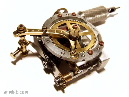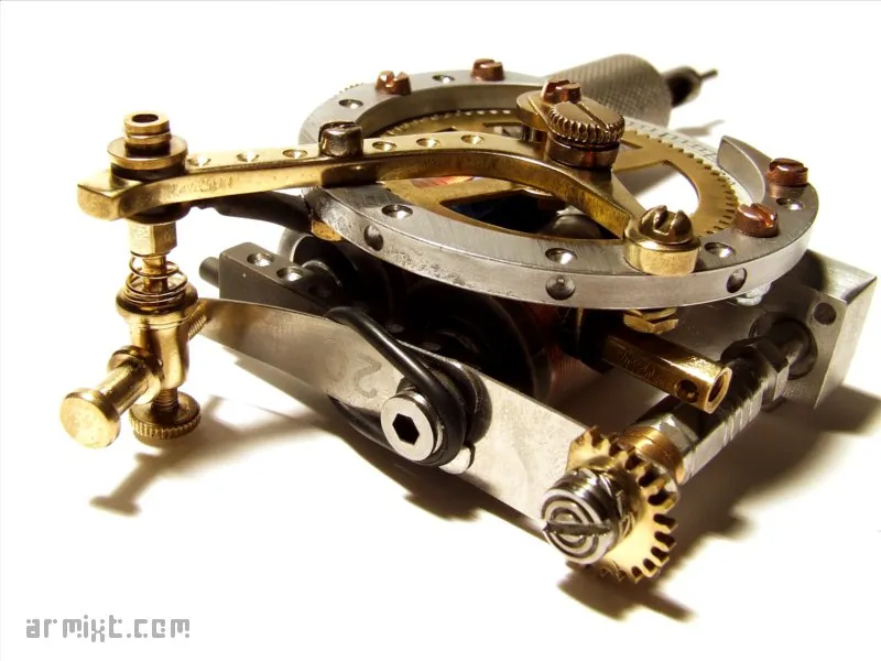 Par Armixt, 10 mai, 2013 Description : Handmade tattoo machine Structure : en aluminium, laiton, métal et cuivre Ressorts durs (20) Bobines 10 tours 8 volts, 120 hertz, 54% duty Poids : 216 grammes Particularité : Traceuse (Liner) 450€ (vendu /sold out) Disponibilité vendu Publié dans Tatouage Voir plus de Handmade Tattoo Machine & Outils (Tools) Handmade Tattoo Machine Commentaires Ajouter un commentaire
