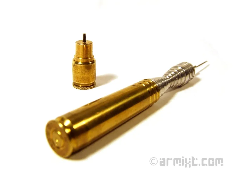 Utilisation : Aiguille à tatouer standard de machine à tatouer. Vous devrez couper votre aiguille à tatouer pour pouvoir l'insérer dans l'outil. Serrage à vis sans tête en inox (clé fournie)