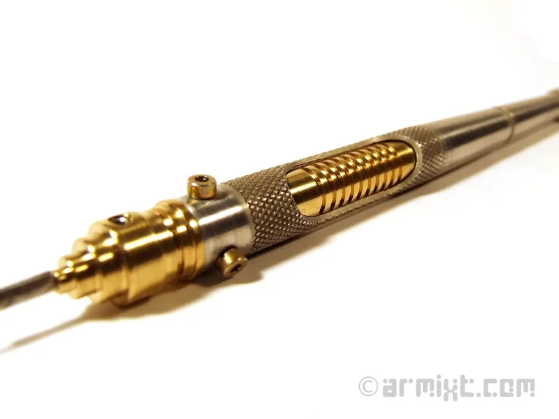Utilisation : Aiguille à tatouer standard de machine à tatouer. Vous devrez couper votre aiguille à tatouer pour pouvoir l'insérer dans l'outil. Serrage à vis sans tête en inox (clé allen fournie)