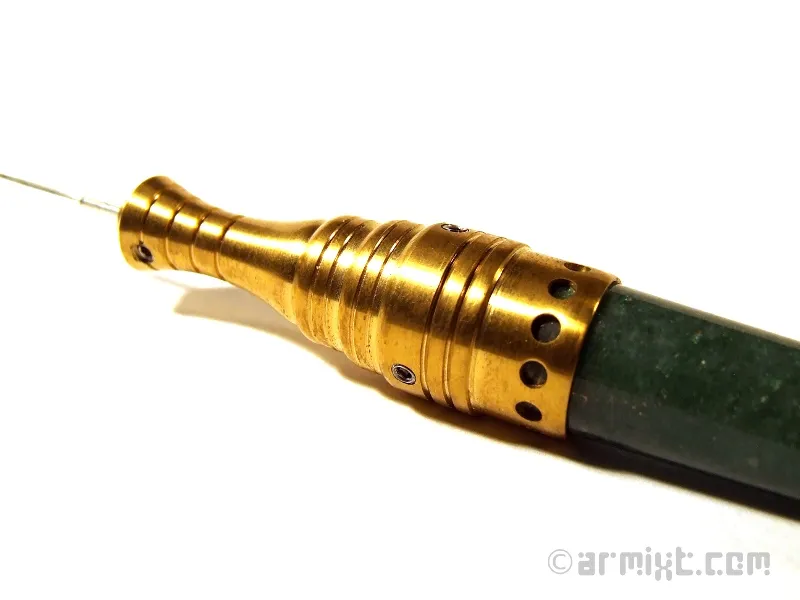 Utilisation : Aiguille à tatouer standard de machine à tatouer. Vous devrez couper votre aiguille à tatouer pour pouvoir l'insérer dans l'outil. Serrage à vis sans tête en inox (clé allen fournie)