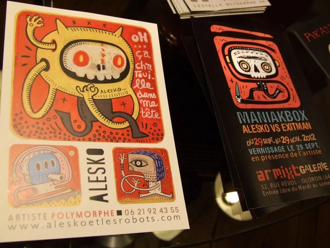 Ancien élève de l'École Supérieure des Arts Appliqués Duperré de Paris, Alesko alias Exit Man, expose à la Galerie Armixt, une série d'oeuvres intitulée Maniakbox. Alesko vs Exit Man, quand deux univers créatifs se rencontrent, fusionnent ou s'opposent, l'un dans l'autre ou l'un contre l'autre, à vous de voir... Fiche artiste