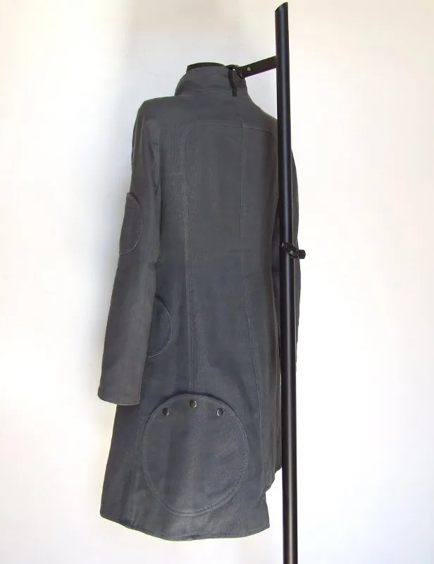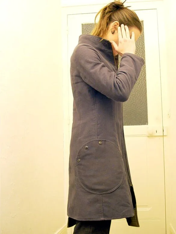 - Le côté nid d'abeille gris offre un style plus classique à ce manteau avec plusieurs poches arrondies de différentes tailles.