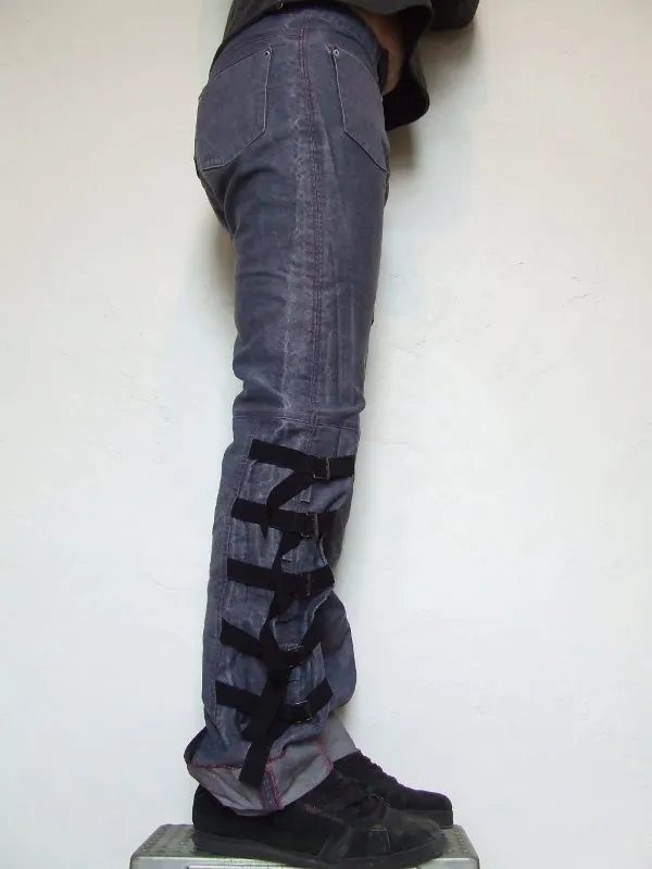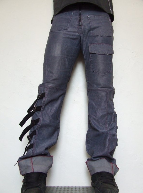 Jeans bleu avec sangles réglables sur bas de jambe, fermeture zippée. Indisponible Disponibilité vendu Publié dans Mode Voir plus de Homme Coton Pantalon Ajouter un commentaire