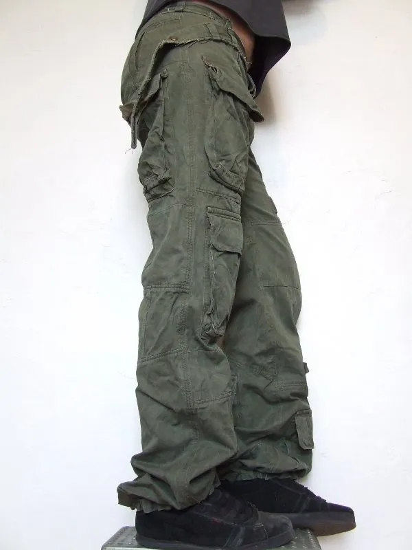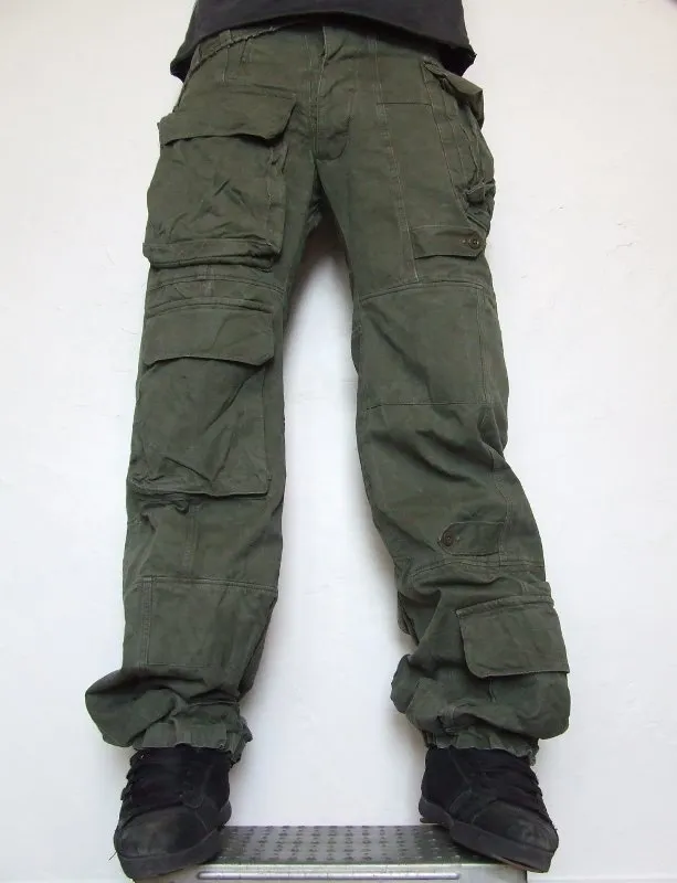 Jeans kaki, matière récupérée sur des treillis et vestes de l'armée qui en fait une véritable pièce unique.