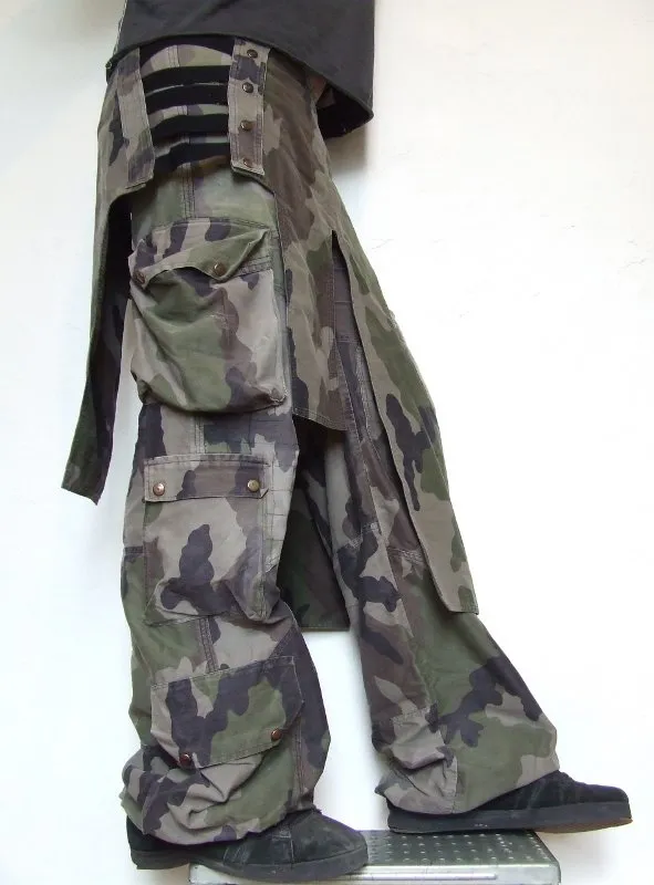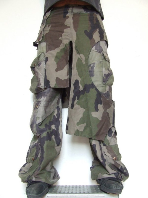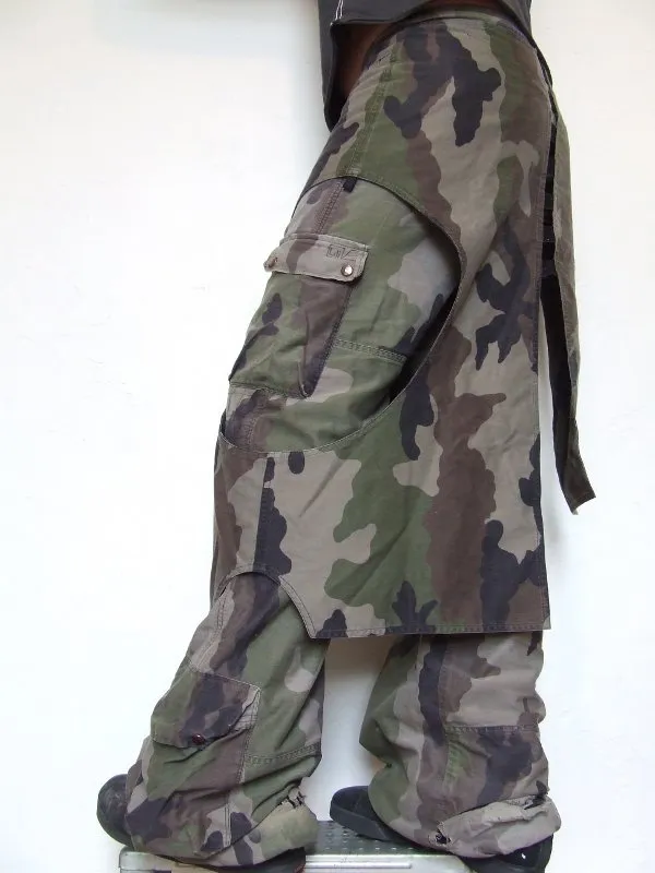 Pantalon-jupe en tissu camouflage.