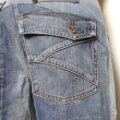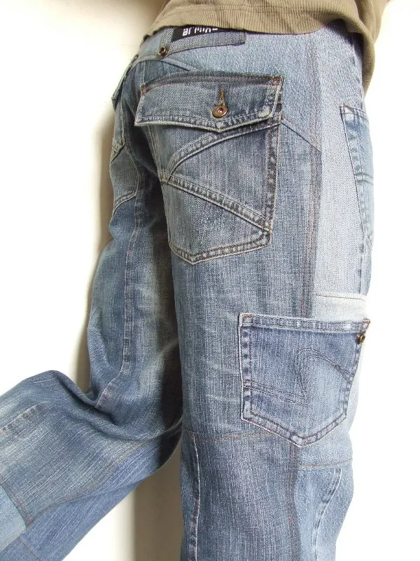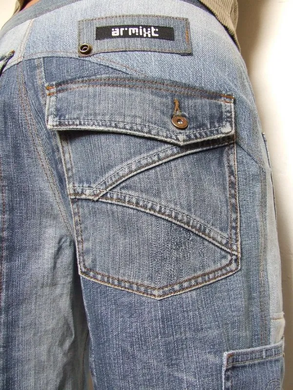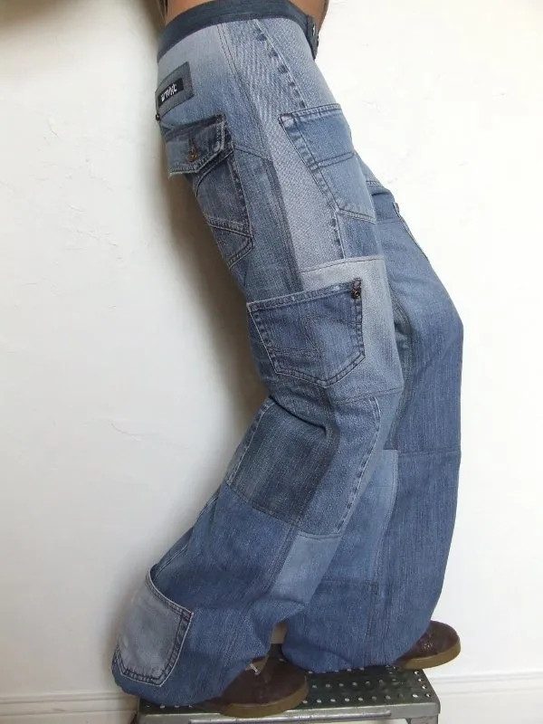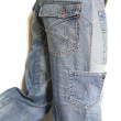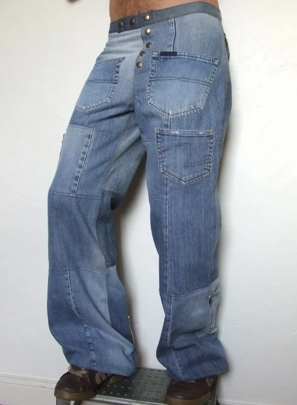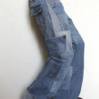 Pantalon en jeans, matière récupérée sur plusieurs jeans.