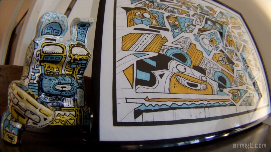 Son animal fétiche, le Panda. On le retrouve partout, souvent stylisé, souligné de traits, de signes et de flèches dans tous les sens... Un graphisme visuel simple et facilement identifiable, mais loin d’être enfantin ou naïf. Aurel restitue des pulsions inouïes, une folie douce qui cache aussi une peur inavouée que l’on devine dans le regard de certains personnages. Découvrez le monde très graphique et coloré du Street-artist Aurel, curieux mélange entre BD et Street-art.