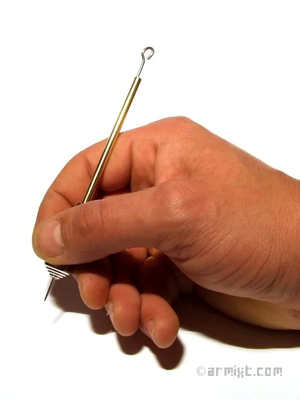 Par Armixt, 13 mars, 2015 Description : Handmade hand-poking tattoo tool Utilisation : Aiguille à tatouer standard de machine à tatouer. Matière : aluminium et laiton Serrage à vis sans tête en inox (clé Allen fournie) 60€ Disponibilité vendu Publié dans Tatouage Voir plus de Hand-Poking Tattoo tool Handmade Tattoo Machine & Outils (Tools) Commentaires Ajouter un commentaire