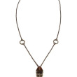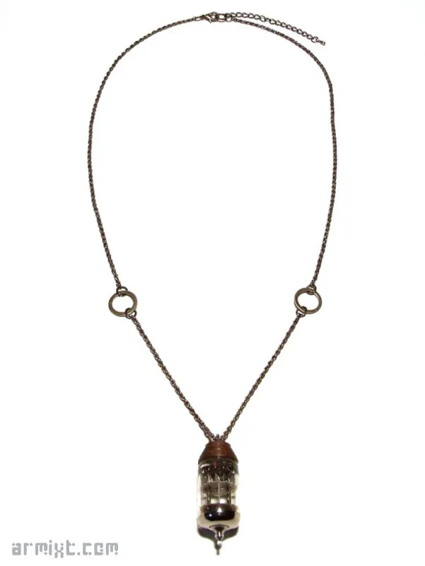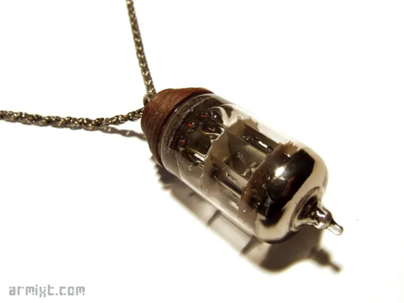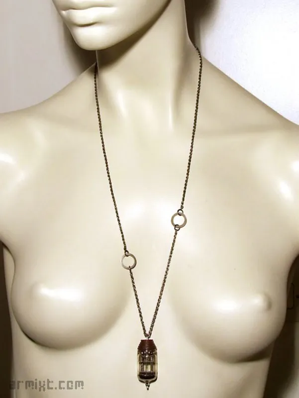 Collier Steampunk avec son pendentif en verre incrusté, monté sur du bois (Bloodwood) tourné à la main, finition à la cire d'abeille, chainette, fermoir.
