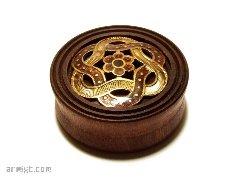 Par Armixt, 23 avril, 2013 Plug Steampunk tourné à la main, finition à la cire d'abeille Bois : Bloodwood Design : déco en métal incrustée Epaisseur : 12,5 mm Diamètre : 34 mm 30€ Disponibilité en stock Publié dans Piercing Voir plus de Plug Bijoux Steampunk 34mm Bois Métal Commentaires Ajouter un commentaire