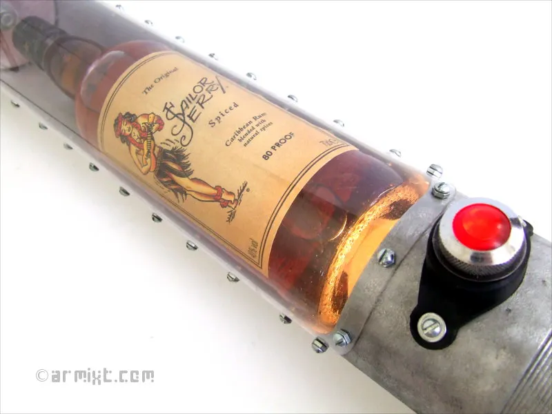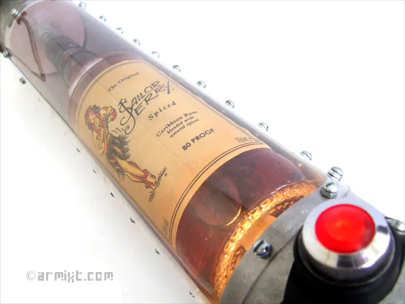 Ce Porte-bouteille publicitaire éclaire une bouteille Sailor Jerry, complice de nos deux derniers vernissages!