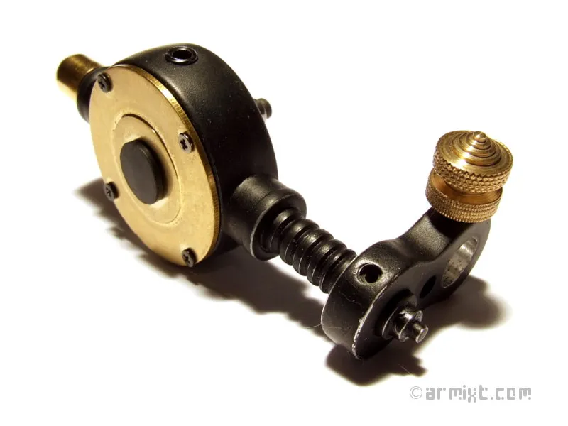 Par Armixt, 6 avril, 2014 Description : Handmade tattoo machine, rotative/rotave Structure : aluminium, peinture noire, laiton Entraînement direct, 1 roulement à billes Mini-moteur, 6-10 volts Connexion RCA Poids : 72 grammes Particularité : traceuse / dot Vendu/sold out Disponibilité vendu Publié dans Tatouage Voir plus de Handmade Tattoo Machine & Outils (Tools) Handmade Tattoo Machine Commentaires Ajouter un commentaire