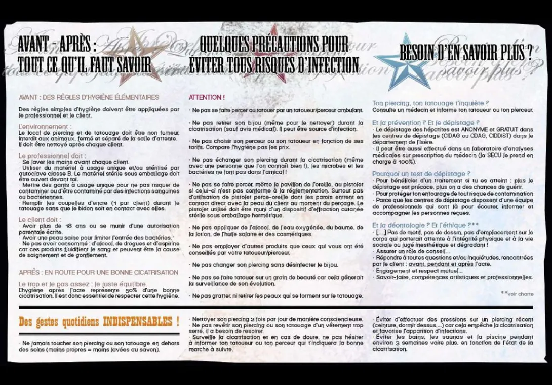 Les actes de piercing et de tatouage sont réalisés dans le respect des règles d'hygiène et de salubrité Attestation de formation aux conditions d'hygiène et de salubrité